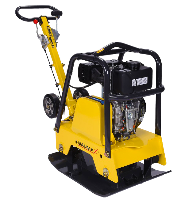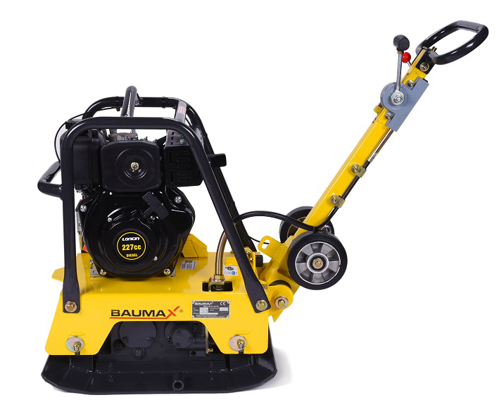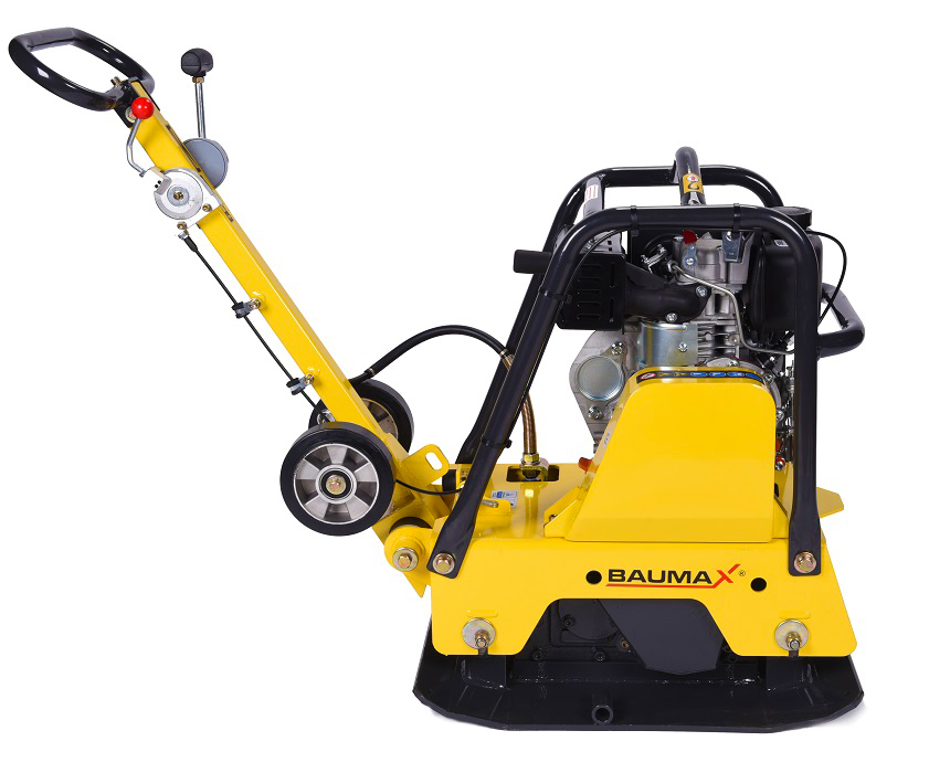 Profesionalna reverzibilna vibro plošča Baumax Baumaschinen Nemčija je primerna za izdelavo dvorišč, utrjevanje terena in okolice. Odlična kakovost in visoka zmogljivost. Nova serija s transportnim okvirjem in velikimi hitro snemljivimi transportnimi kolesi.